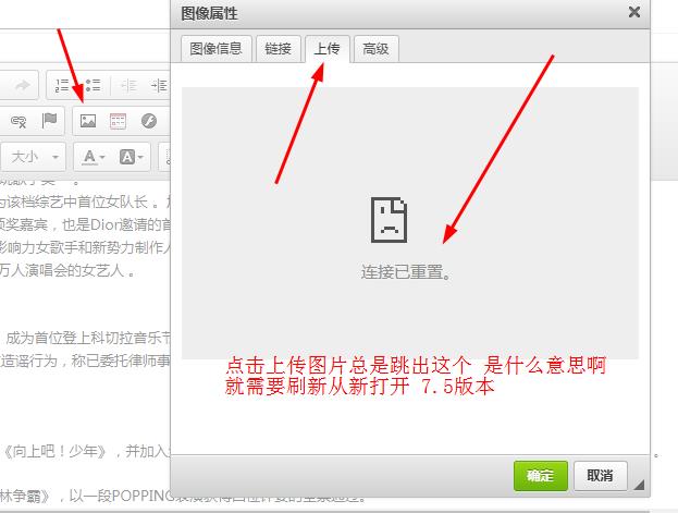 [求助]帝国7.5在编辑器点击上传图片,总是会出现:链接已重置 ,是什么问题。求大佬看看,谢谢。